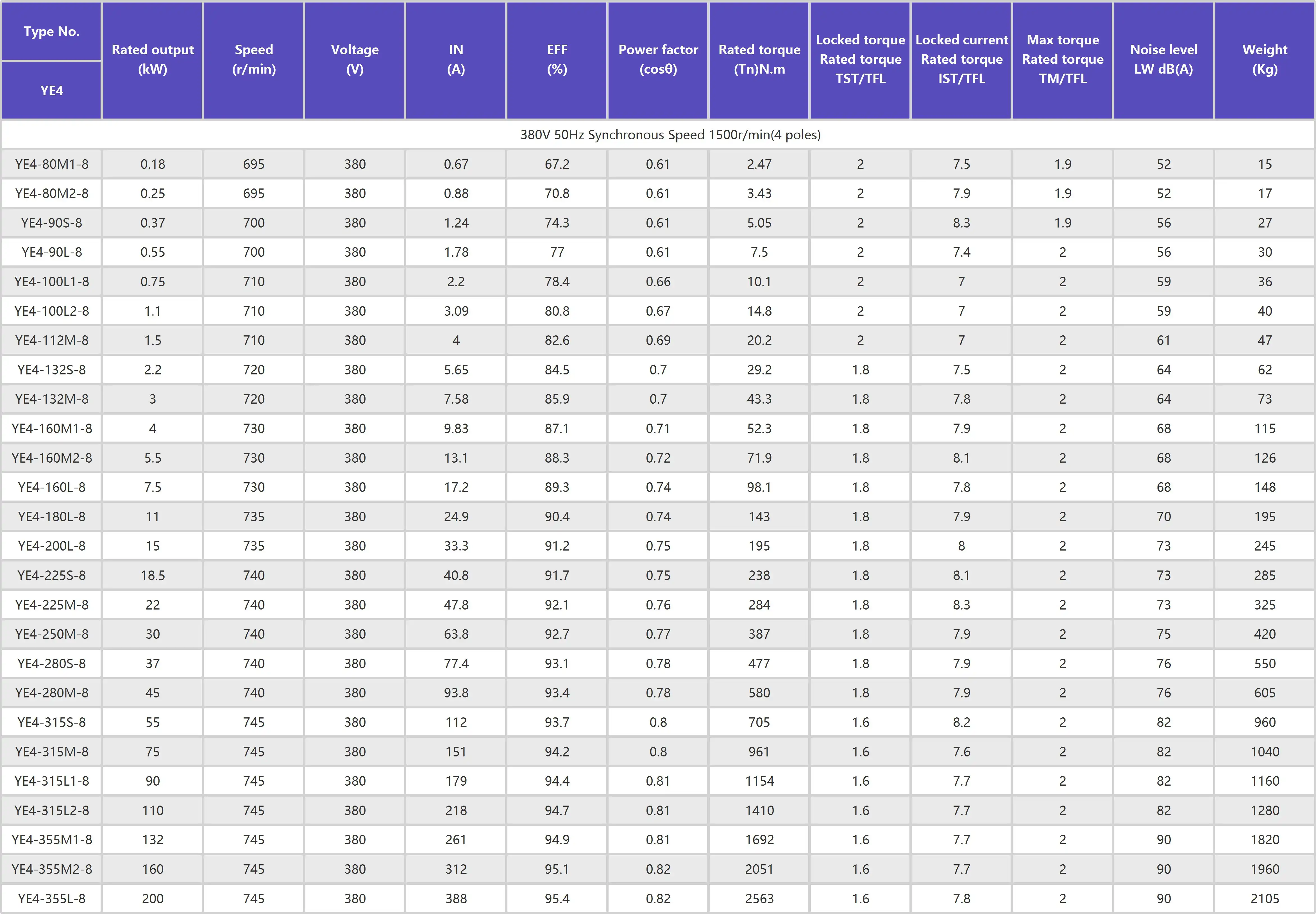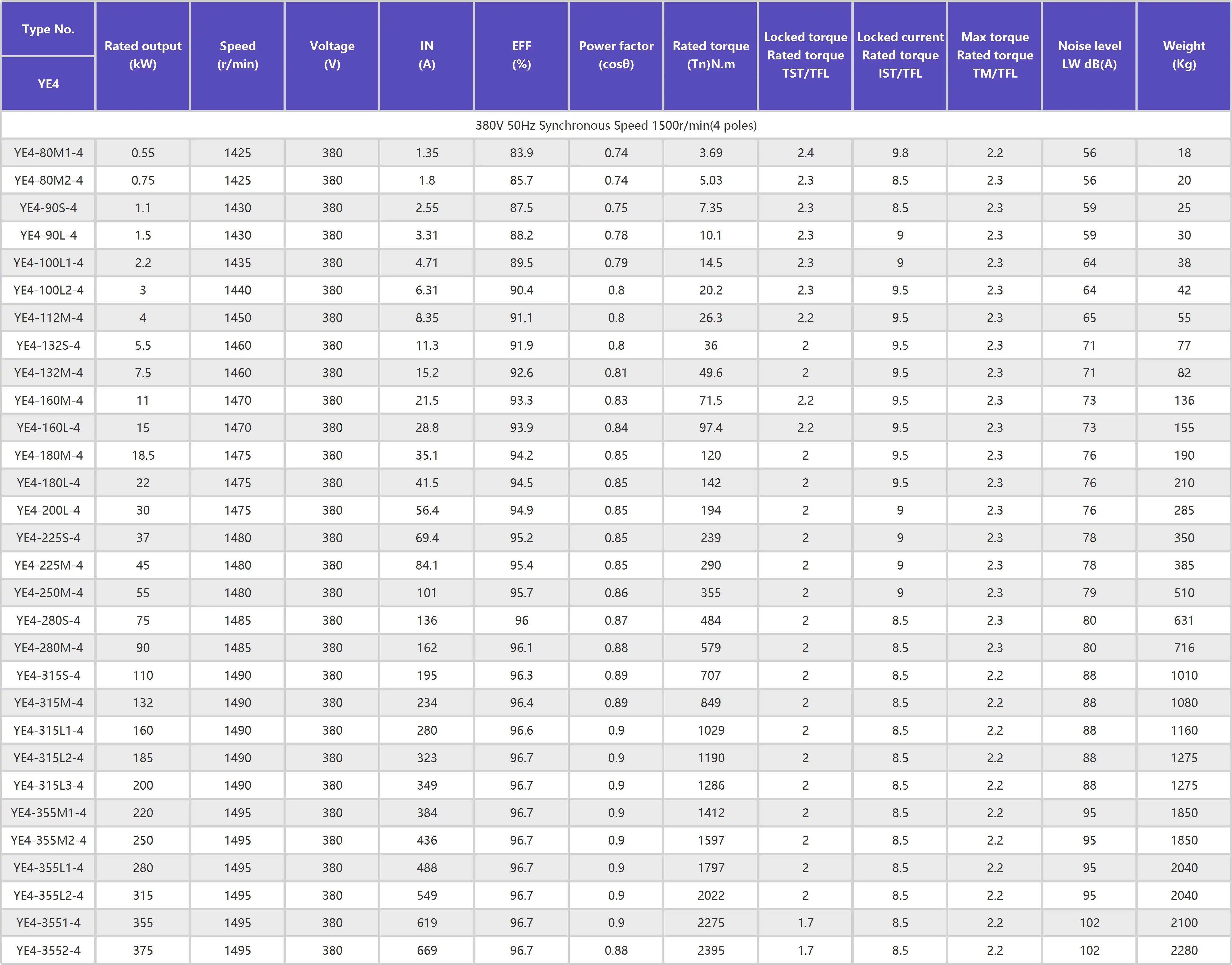 YE4 series ultra- -high efficiency three- phase asynchronous motor is a highly efficient new upgraded product independently developed by bur company. Its efficiency meets the level 2 energy efficiency standard of GB 18613- -2020 and IEC60034- -30-1 IE4 efficiency index. The installation size conforms to IEC standard and national standard, customers can realize fast switching. YE4 series motor has the characteristics of beautiful appearance, low loss, low noise, low vibration, safe and reliable, easy maintenance, etc.